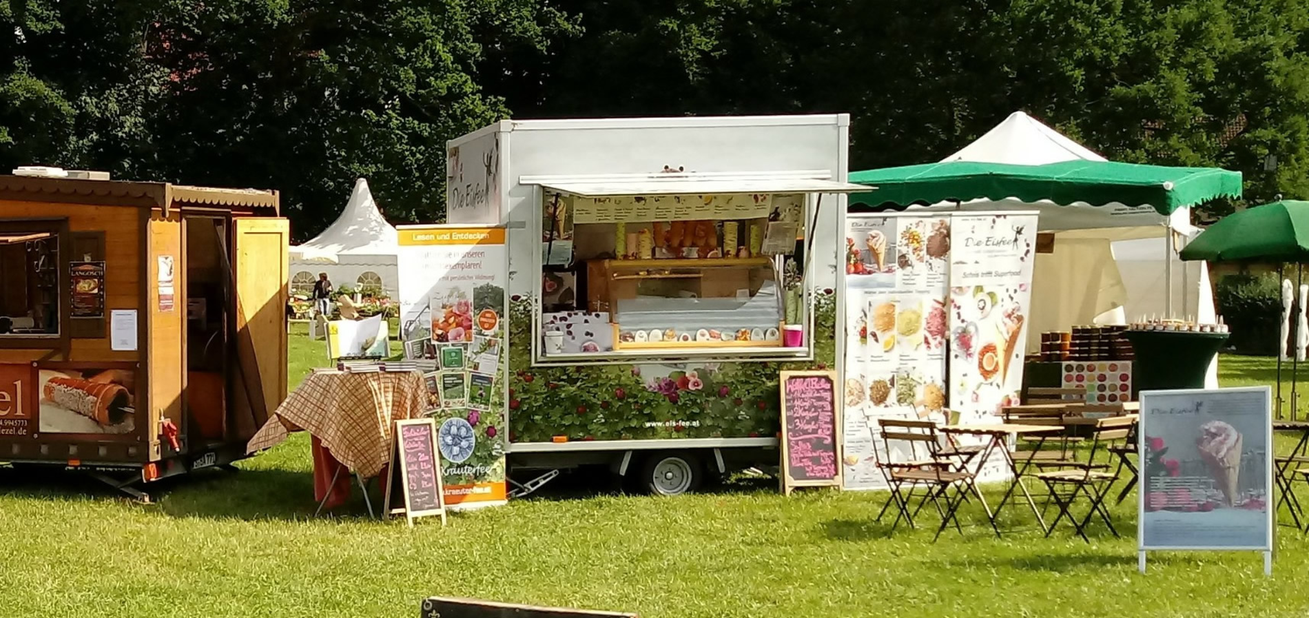 Wir freuen uns sehr für Die Eisfee einen Ausblick auf das Sortiment geben zu dürfen. Wir arbeiten als Team im wettergeschützten Verkaufswagen mit Normalstrom und einem umfangreichen Bio-Sortiment und das nahezu ohne Plastik oder Papier-Abfälle.